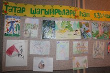 Бу атнада безнең балалар бакчасында “ Татар шагыйрьләре һәм язучылары әкиятләре” темасына рәсем күргәзмәсе башланды.