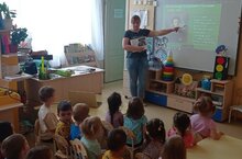 Сегодня в детском саду прошло мероприятие по БДД " Дорожные знаки". Ведущий специалист отдела профилактики территориального управления в г.Казани ГБУ БДД Мударисова Лилия Масгутовна и старший инспектор, капитан полиции Гильмутдинов Ленар Камилевич провели беседу с детьми о дорожных знаках и правилах поведения на улице и в транспорте.