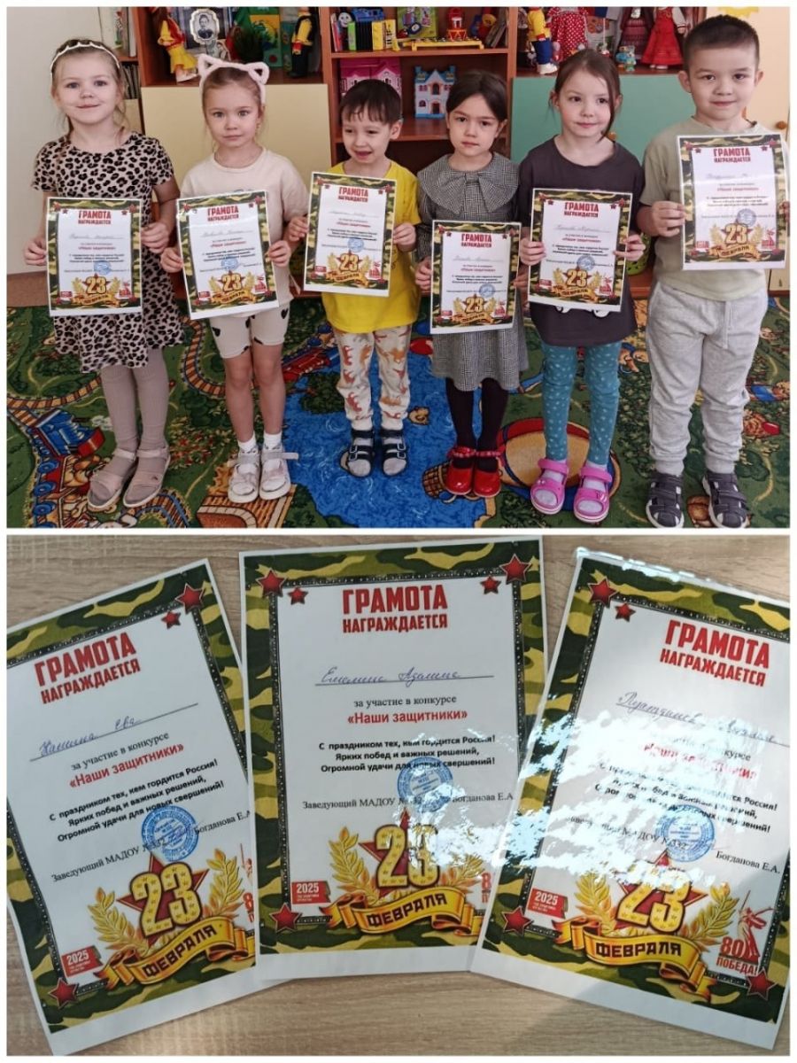 За выставку рисунков и поделок, посвященной Дню защитника Отечества, ребята получили грамоты.
