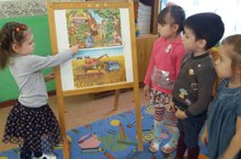 Честь детского сада на районном этапе городского конкурса "Воспитатель года-2021 " отстаивала воспитатель 1 кв.категории Валеева Раиля Марсовна. Показала открытое занятие с детьми средней группы "Путешествие в мир театра" , использовав интересную форму "перчаточный театр" . Дети играли, знакомились с миром театра , перевоплащались в артистов, делали своими руками маски,побывали за занавесом и узнали много интересного. Желаем творческого вдохновения и успехов от всего коллектива .