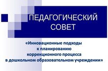 Сегодня состоялся педагогический совет по проблеме "Инновационные подходы к планированию коррекционного процесса в дошкольном образовательном учреждении", целью которого было совершенствование профессиональных компетенций в области проектирования направлений коррекционно-развивающей работы в соответствии с ФГОС ДО.