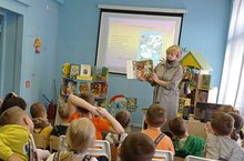 Сегодня наши дети были в библиотеке на мероприятии, посвященном "Неделе детской и юношеской книги" и юбелею Корнея Ивановича Чуковского. Дети принимаи участие в интерактивной викторине, смотрели отрывки любимых мультфильмов, обсуждая происходящие ситуации и смыслообразующие факторы.