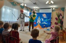 Сегодня в нашем детском саду прошел спектакль "Лягушонок в космосе". Детям очень понравился спектакль!