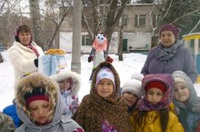 В нашем детском саду прошел праздник "Масленница". Масленичные гуляния прошли на улице. Праздничное гуляние сопровождалось задорными плясками и играми-соревнованиями, а после все ели вкусные блинчики:)