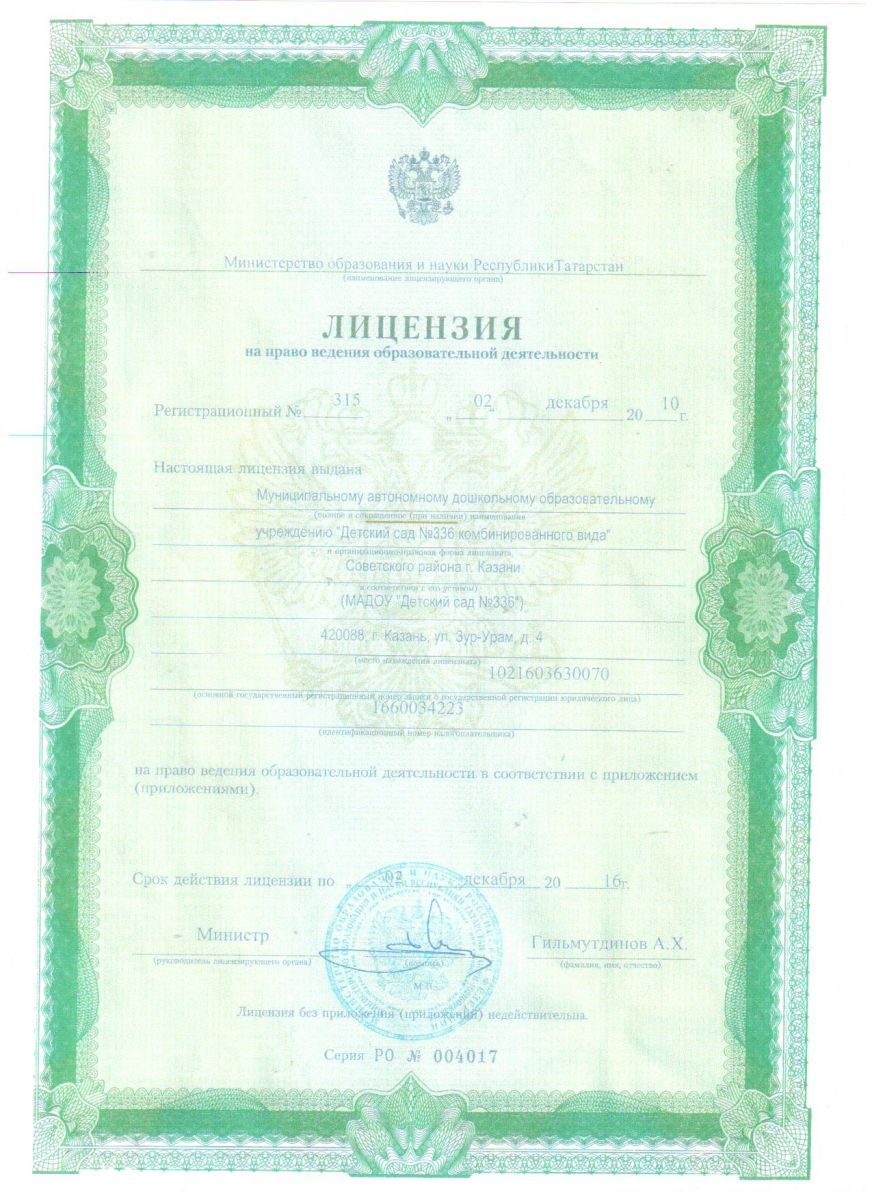 Муниципальное автономное дошкольное образовательное учреждение "Детский сад №336 комбинированного вида" Советского района г Казани