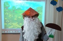 Потом дети перенеслись в сказочный лес, в гости к Лесовичку. Он предлагал детям решить экологические задачи, с которыми они прекрасно справились. Потом они поиграли на музыкальных инструментах для кузнечика Кузи. В завершении игры дети посмотрели мультфильм про Эколят. Лесовичок всем детям подарил эмблемы.