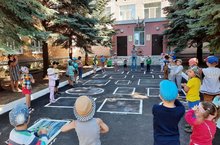 Педагоги детского сада вооружитесь разноцветной краской, валиками и кисточками и превратили новый асфальт в веселую игровую площадку!