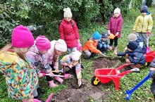 В рамках акции "Растём вместе" дети подготовительных групп приняли участие в посадке саженцев сосен на территории ДОУ.