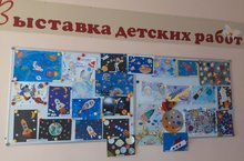 12 апреля - День космонавтики. В холле детского сада открылась выставка детского творчества. Через детское творчество дети знакомятся с космосом. планетами, спутниками, космонавтами.