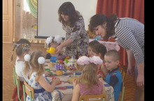 Совместную образовательную деятельность русскоязычного воспитателя и воспитателя по обучению татарскому (русскому) языку показали в старшей логопедической групп (второй год обучения по УМК русскоязычных детей) - воспитатель Шарафеева Е.И. и воспитатель по обучению татарскому (русскому) языку Гилязутдинова Э.А.