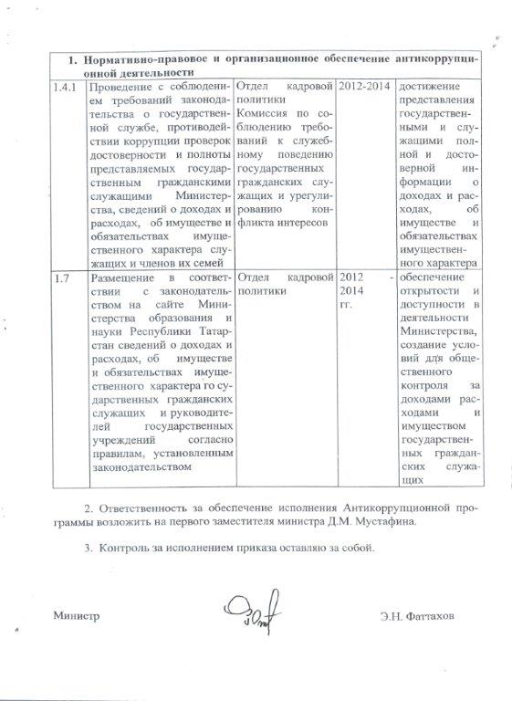 Приказ МОиН РТ от 07.05ю2013г. №1783/13 "О внесении изменений в Антикоррупционную программу МОиН РТ на 2012-2014г.г