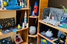 Воспитанники со своими папами и мамами смастерили замечательные «космические» поделки.Чего среди них только нет: и ракеты, и летающие тарелки, и инопланетяне, и планеты солнечной системы, и многое другое.