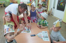 В нашем детском саду, в рамках плана летних оздоровительных мероприятий, в группах прошли мастер классы - «Мастерим из газеты». Детям средней, старшей и подготовительной групп было предложено смастерить из обычной газеты панамки, пилотки, тюбетейки, лодочки. Процесс был захватывающим. Очень интересно было наблюдать, как за короткое время листы газет в детских руках превратились в лодочки и симпатичные головные уборы. Полезные поделки пригодились ребятам и во время прогулки.