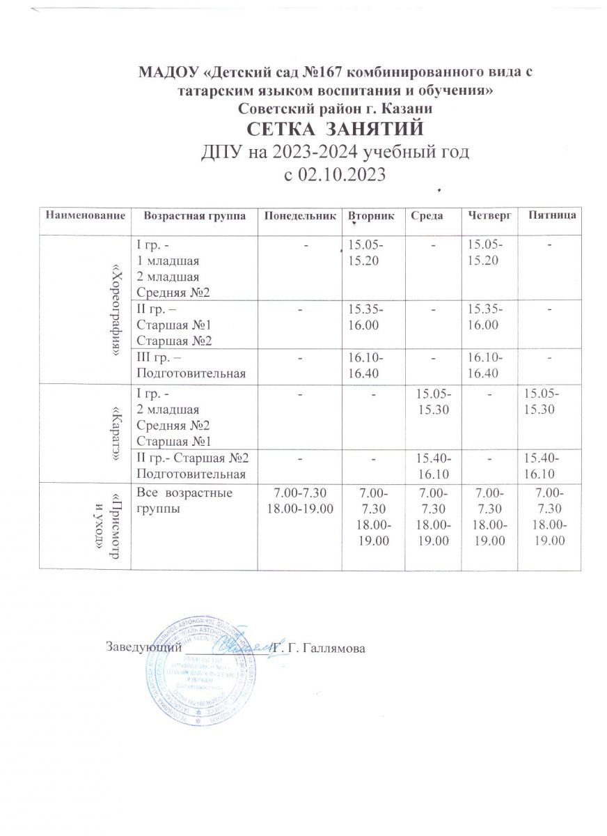 Сетка занятий ДПО услуг на 2023-2024 учебный год