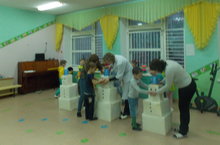 Сегодня в детском саду прошел спортиный праздник, посвященный дню матери. В подготовительных группах дети соревновались в умении варить компот и борщ, убираться в квартире, сервировать стол, утюжить белье и аккуратно его складывать, покупать в магазине продукты. Праздник удался на славу. 2 мамы "работали" членами жюри. Очень всем понравилось.