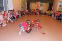 Дети подготовительной 2 группы вместе со Старичком-лесовичком выручали Осень, которую "украла" тетушка Слякоть. Для этого им немало пришлось потрудиться. Но больше всего родителям понравилась пантомима "Репка". Лучшая исполнительница роли - Репка-Ясмина С..