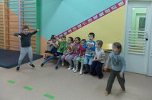 Сегодня в зале собрлись дети подготовительных групп. Для них Степанова Л.Н. подготовила и провела спортиные соревнования.