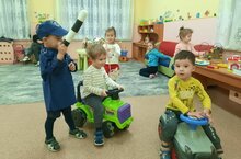 В 1 младшей группе была организована образовательная деятельность по безопасности дорожного движения на тему "Виды наземного транспорта" и "Наши помощники на дороге". Знания, полученные в ходе занятия были закреплены в сюжетно-ролевой игре