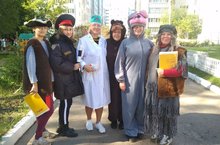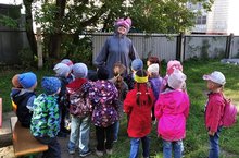 Сегодня прошел праздник "День знаний". Сначала воспитанники старших и подготовительных групп играли в игру паровозик "Умники", затем состоялся спектакль прямо во дворе детского сада.