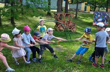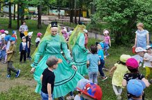 Сегодня в детском саду прошел праздник "Сабантуй". Дети передвигались по территории по маршрутным листам и играли в различные игры.