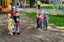 Сегодня в детском саду проводился традиционная игра, посвященная вопросам безопасности и экологии. Играли в игру по маршрутным листам средние, старшие и подготовительный группы. Всего работало 6 площадок. На фотографии площадка "Правила дорожного движения".