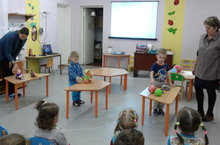 Сегодня в нашем детском саду прошел районный семинар для инструкторов по физической культуре на тему "Взаимодействие инструктора по физической культуре с педагогами ДОУ в процессе реализации задач физического развития". Была показана работа с 8 группами детского сада. Средняя группа №4 показала ежедневную утреннюю зарядку. Провела ее инструктор по физическому воспитанию Швыркалова Н.А. и воспитатель высшей категории Ларина Н.А.
