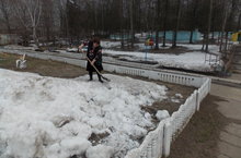 Начался двухмесячник по очистке территории детского сада. Пока рыхлим сугробы.