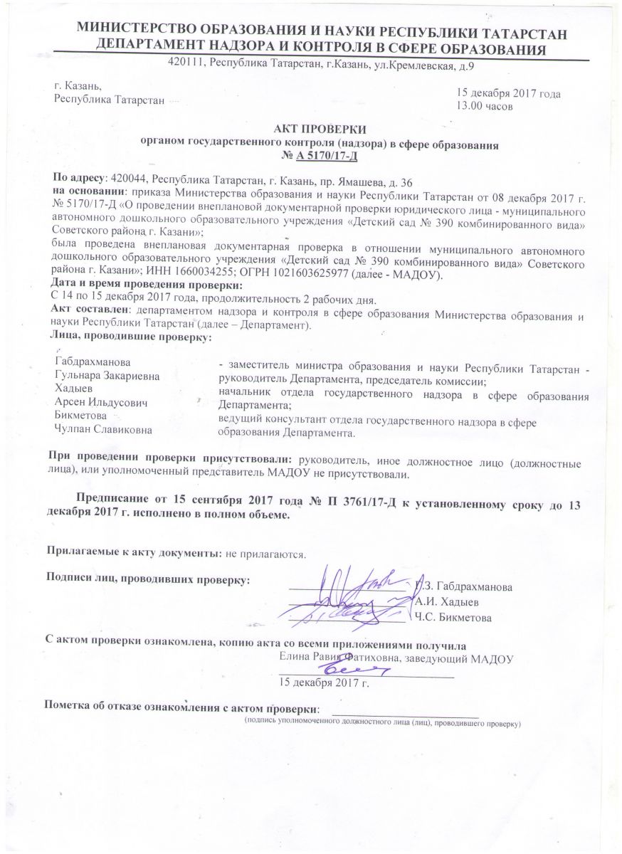 Рособрнадзор Акт проверки от 8.12.2017 года