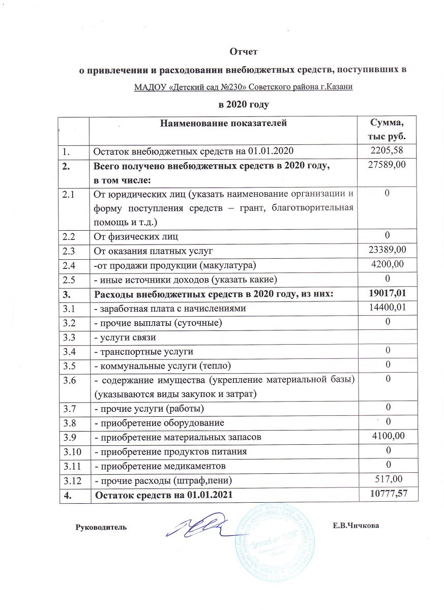 Отчет о привлечении и расходовании внебюджетных средств за 2020г