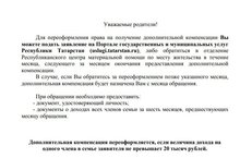 Министерство труда, занятости и социальной защиты реализует возможность подачи заявления на назначение дополнительной компенсации в электронном виде на Портале государственных имуниципальных услуг Республики Татарстан, в связи с чем прием заявлений в детских садах отменен