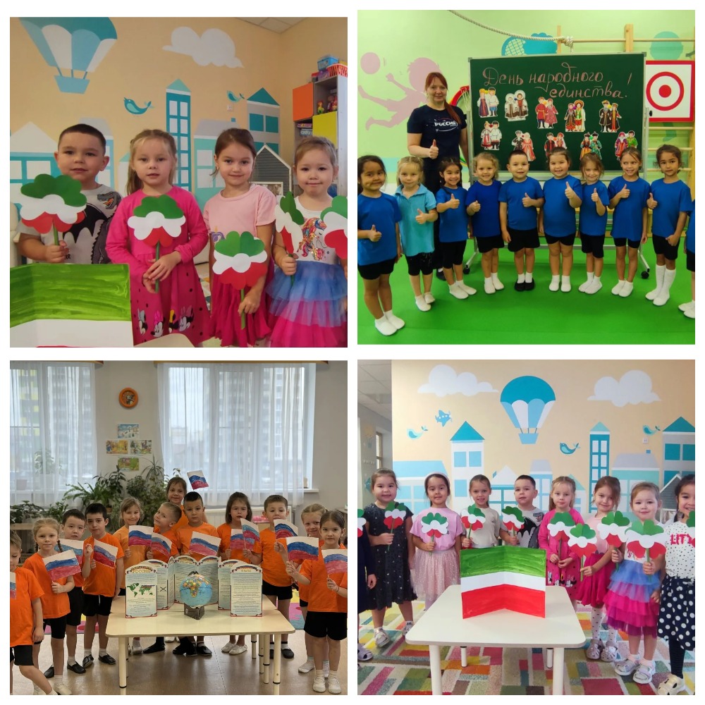 В средних, старших и подготовительных группах прошли занятия и спортивные развлечения "Мы разные, но мы вместе" посвященные Дню народного единства. Дети "путешествовали" по карте России, отгадывали загадки, собирали пазлы, сделали поделки.