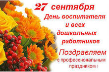 27 сентября по всей стране поздравляют всех работников дошкольного образования. В этот день их благодарят за мудрость, терпение, любовь к детям и своей профессии, ведь именно от этих людей зависит то, какими вырастут малыши. Наш детский сад от всей души поздравляет всех коллег с профессиональным праздником. Спасибо Вам за то, что Вы дарите детям свое тепло, заботу и ласку. спасибо за Ваше бесконечное терпение, душевную доброту и тактичную мудрость. Мы желаем, чтобы в Ваших домах всегда была теплая и благоприятная обстановка, а в жизни только солнечное настроение, отменное здоровье и нескончаемое благополучие! С Праздником!!!