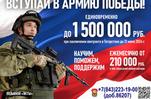 Уважаемые родители! Ведется набор на военную службу по контракту. Единовременная выплата до 1,5 млн. рублей при заключении контракта до 31 июля. Заработная плата от 210 тысяч рублей. Номер телефона для связи - +7(843)223-19-00 (доб.86207)