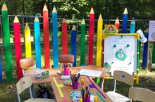 Педагоги МАДОУ "Детский сад № 166" организовали для самых маленьких гостей мастер - класс по изготовлению женского татарского национального головного убора калфак "Калфагым" на территории специальной детской игровой площадки «Сәләтле бәләкәч».