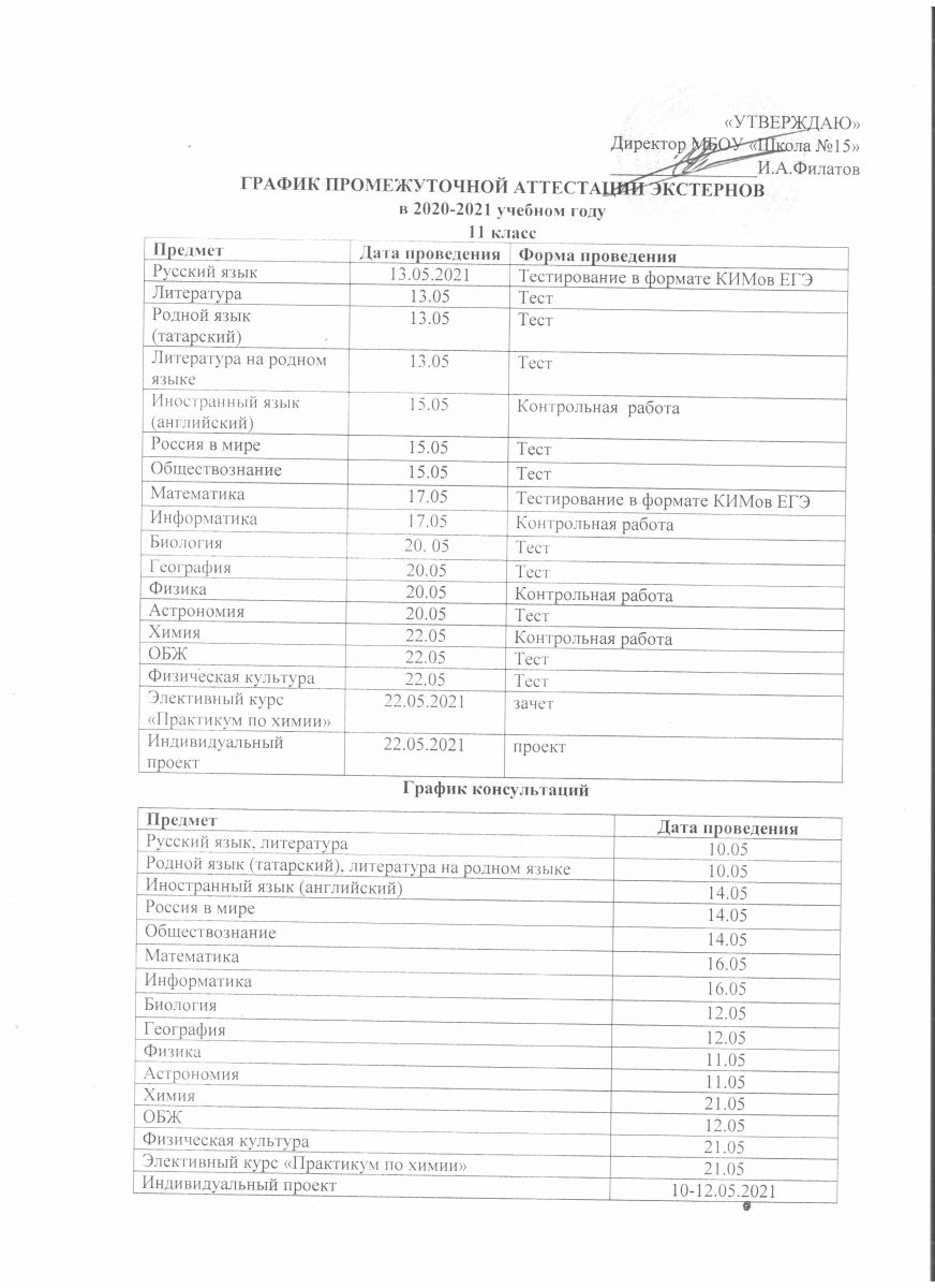 МБОУ «Средняя общеобразовательная школа №15 с углубленным изучением отдельных предметов» Советского района г. Казани