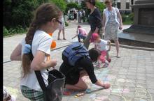 Наши ребята приняли участие в конкурсе рисунков на асфальте, дали интервью телекомпании «Эфир», пообщались с животными в переносном зоопарке.