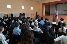 Ребятам провели профориентационную лекцию, на которой им рассказали, что они сами могут сделать свой выбор не только в пользу гражданских высших учебных заведений, но и стать курсантами высших военных училищ, так же рассказывали про их льготы, условия поступления, и какие существуют направления специальностей.