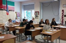 Члены Совета молодых юристов при Татарстанском региональном отделении Ассоциации юристов России Собровина Александра Алексеевна и Бляндук Вероника Викторовна прочитали лекцию в рамках проекта «Школа права» для учащихся 9а,б классов по теме «История Конституции Российской Федерации»