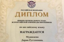 Поздравляем Муракаеву Дарию, ученицу 11 класса, ставшую призёром регионального этапа Всероссийской олимпиады школьников по английскому языку (учитель Бердинская О.Н.)