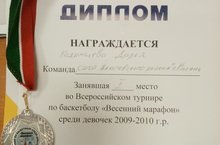 Ученица 5Д класа, Кодинцева Дарья, заняла почетное второе место во Всероссийском турнире по баскетболу "Весенний марафон" среди девочек 2009-2010 г.р.