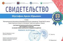 Учащиеся 5Д и 6В классов приняли активное участие в совместном проекте Госавтоинспекции МВД по РТ, ГБУ «Безопасность дорожного движения» и ГБУ «Научный центр безопасности жизнедеятельности»- Республиканской интернет-олимпиаде для учащихся 5-6 классов.