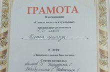 29 октября команда учащихся 5 Д класса "Клетки природы" (Акмаев Даниэль, Баруздина Софья, Хабибуллина Самина и Ковтонюк Эмилия) одержала победу в игре "Занимательная биология"..