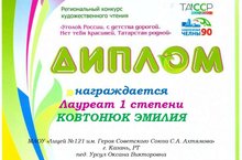 Ученица 5 Д класса, Ковтонюк Эмилия, приняла участие в региональном конкурсе художественного чтения «Уголок России, с детства дорогой.