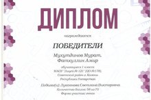 Учащиеся 1 в класса Мухутдинов Мурат и Фатхуллин Амир награждены Дипломом победителей..