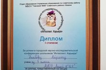 9 февраля 2019 года на базе МБОУ «Гимназия №90» Советского района г.Казани проходила городская научно-исследовательская конференция «Интеллект. Карьера». Поздравляем учащихся нашего лицея, занявших призовые места: