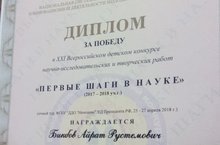 26 апреля 2018 года в г.Москва проходил XXI Всероссийский детский конкурс научно-исследовательских и творческих работ «Первые шаги в науке».