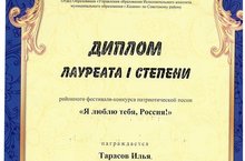 1 марта 2017 г. на базе ЦДТ "Азино" прошел гала-концерт районного фестиваля патриотической песни "Я люблю тебя, Россия!". Тарасов Илья занял 1 место.