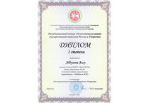 Поздравляем Абдулову Алсу, ученицу 5К класса, с победой в Республиканском конкурсе обучающихся на знание государственной символики России и Татарстана в номинации "Государственная символика Республики Татарстана" (учитель - Хабибуллина И.И.)