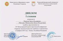 Поздравляем ученицу 8 Б класса Ковтонюк Эмилию (рук. Валиуллина Р.Х., Тарасов И.А.) с дипломом II степени на IX Всероссийской (с международным участием) научной конференции учащихся имени Н.И. Лобачевского, посвященной 220-летию Казанского университета.