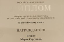Поздравляем Кубрак Марию, ученицу 10Б класса, ставшую призёром регионального этапа Всероссийской олимпиады школьников по английскому языку!